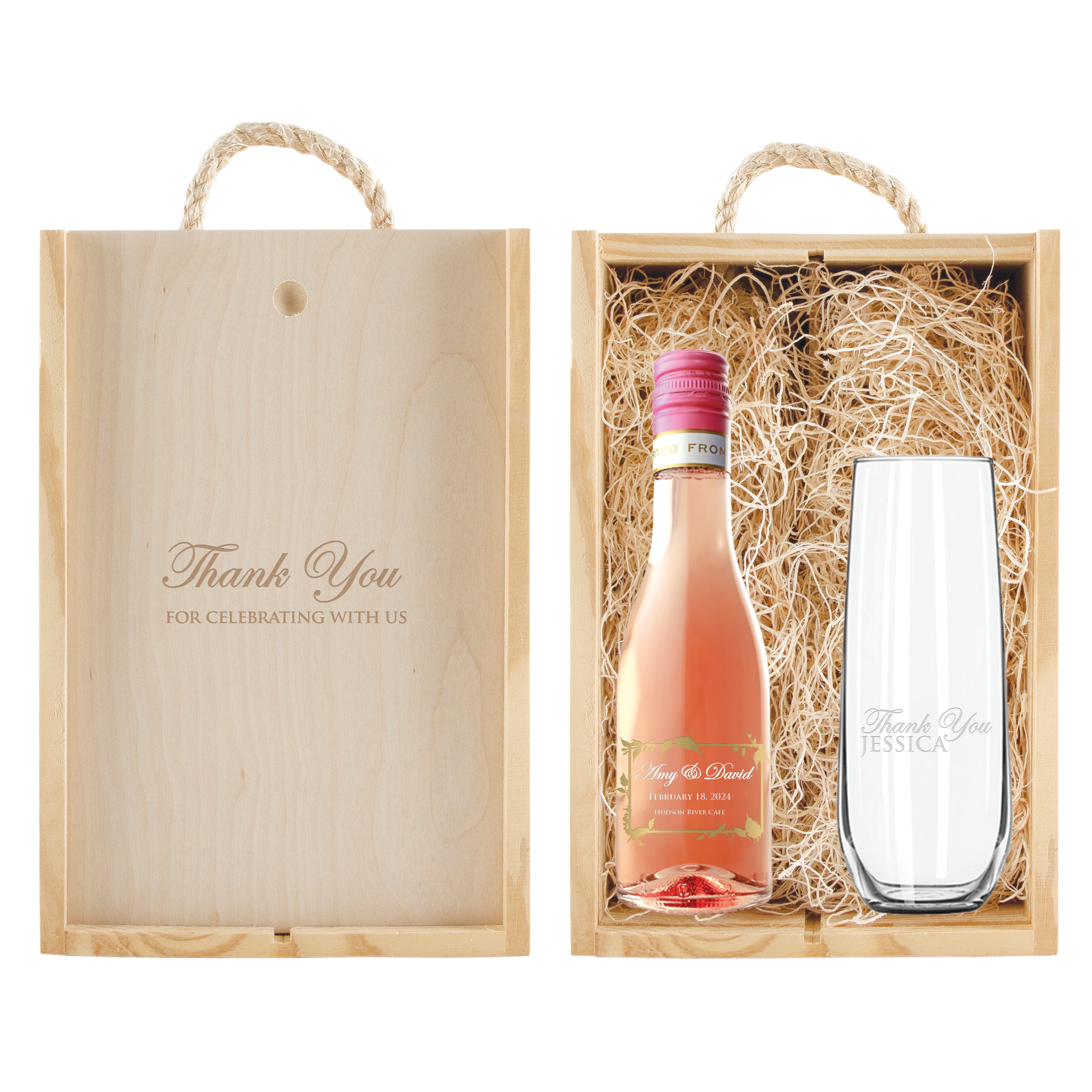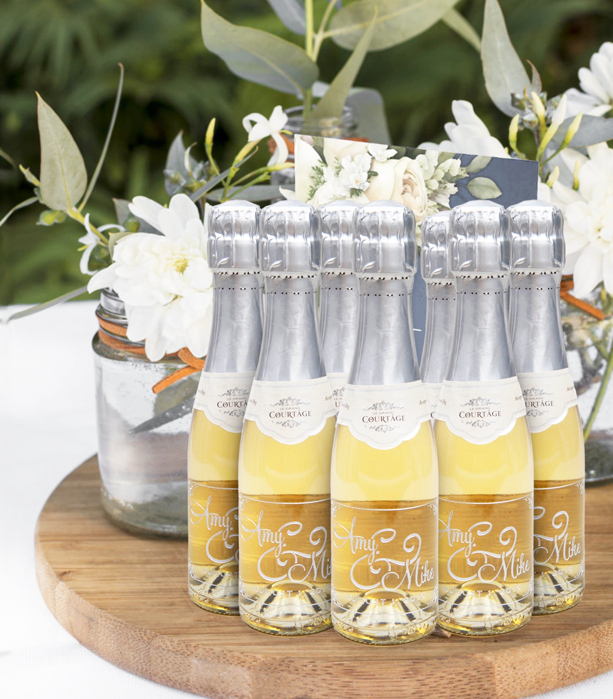 Our mini champagne bottles are the perfect way to get the party started. Family and friends will love these fun and creative wedding favors, and you’ll have permanent keepsakes to remember the best day of your life. Engrave your names and the date of your wedding on the champagne or wine of your choice for a special memento you and your guests will treasure.